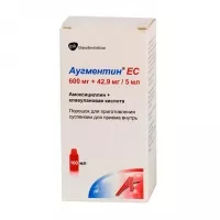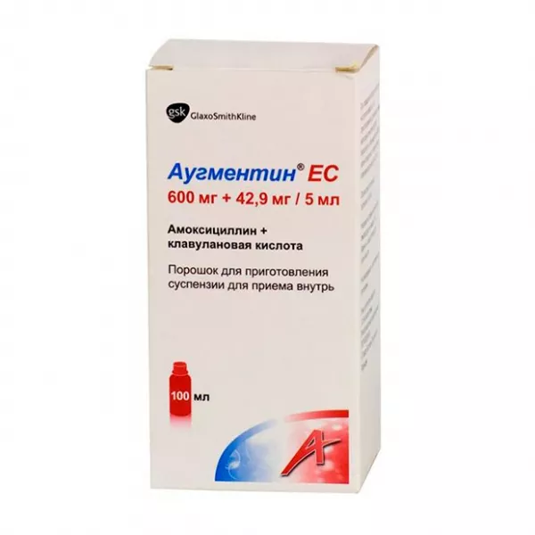 ?Порошок д/п сусп. 600 мг/5 мл + 42,9 мг/5 мл фл. 100 мл. Амоксициллин 600 мг/5 мл Кислота клавулановая 42,9 мг/5 мл Прочие ингредиенты: кремний коллоидный безводный, натрия карбоксиметилцеллюлоза, аспартам, смола ксантановая, кремния диоксид, ароматизатор клубничный. Препарат содержит амоксициллин в виде тригидрата и клавулановую кислоту в виде калиевой соли.