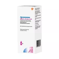 ?Порошок д/п сусп. 228,5 мг/5 мл фл. 70 мл, № 1. Амоксициллин 200 мг/5 мл Кислота клавулановая 28,5 мг/5 мл Прочие ингредиенты: камедь ксантановая, гидроксипропилметилцеллюлоза, кремния диоксид коллоидный безводный, кислота янтарная, кремния диоксид, ароматизаторы сухие апельсиновые (610271Е и 9/027108), ароматизатор малиновый сухой, ароматизатор сухой "Светлая патока", аспартам (Е951). Препарат содержит амоксициллин в виде тригидрата и клавулановую кислоту в виде калиевой соли.
