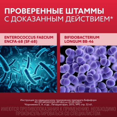 Бифиформ — препарат для лечения и профилактики дисбактериозов различной этиологии. Входящие в состав препарата молочнокислые бактерии поддерживают и регулируют физиологическое равновесие кишечной микрофлоры.