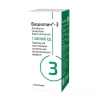 1 флакон (Бициллин−3) с порошком для приготовления инъекционного раствора для в/м введения содержит бензатина бензилпенициллина, бензилпенициллина натрия и бензилпенициллина новокаиновой соли по 200000 ЕД или 400000 ЕД; во флаконах 10 мл или во флаконах 10 мл, в коробке 50 флаконов.