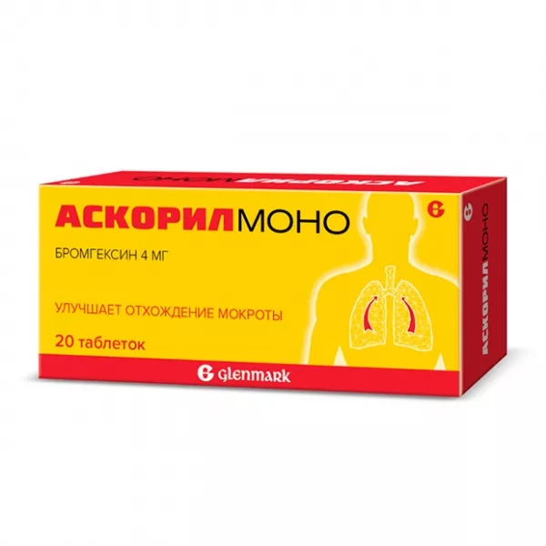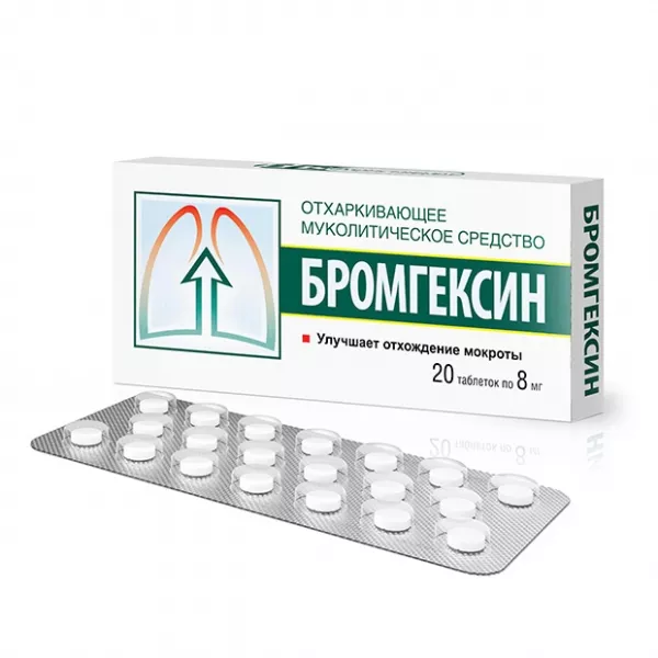 Действующее вещество: бромгексин гидрохлорид 4 и 8 мг;