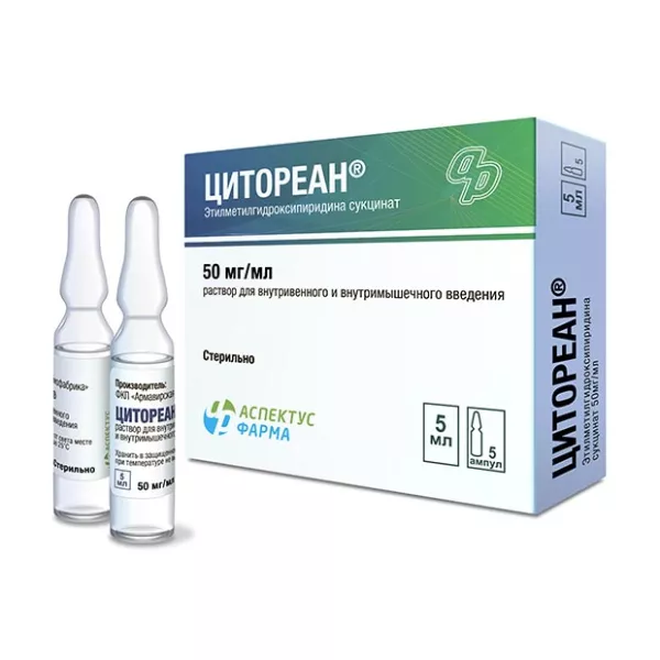 Действующие вещества: этилметилгидроксипиридина сукцинат-50 мг