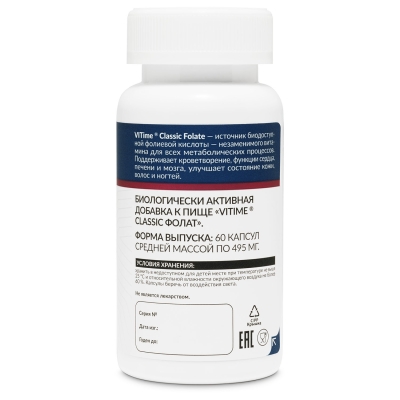 Витамин группы В (витамин Вс, витамин В9), может синтезироваться микрофлорой кишечника. В организме фолиевая кислота восстанавливается до тетрагидрофолиевой кислоты, являющейся коферментом, которая служит акцептором одноуглеродных радикалов и участвует в метаболическом обмене. Участвует в синтезе пуриновых и пиримидиновых оснований, метаболизме некоторых аминокислот (например, взаимопревращении серина и глицина), стимулирует эритропоэз биосинтезе метилового радикала метионина и деградации гистидина, а также в созревании быстро пролиферирующих тканей, особенно крови и желудочно-кишечного тракта. Дефицит фолиевой кислоты ведет к мегалобластной анемии; при недостаточности фолиевой кислоты в I триместре беременности нарушается развитие нервной системы плода.