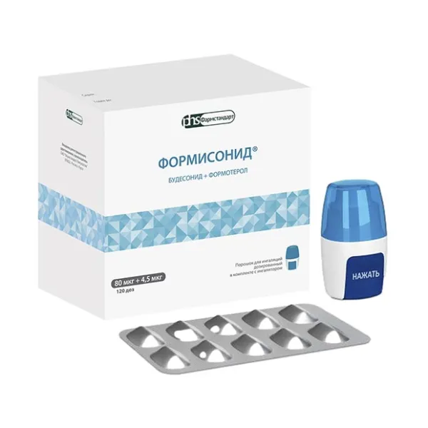 Добавление формотерола к будесониду уменьшает выраженность симптомов бронхиальной астмы, улучшает функцию бронхов и уменьшает частоту обострений заболевания. Действие данной фиксированной комбинации на функцию бронхов соответствует действию комбинации монопрепаратов будесонида и формотерола и превышает действие одного будесонида. Во всех случаях для купирования приступов использовался бета2-адреностимулятор короткого действия. Не отмечалось снижения противоастматического действия с течением времени. Комбинация характеризуется хорошей переносимостью.