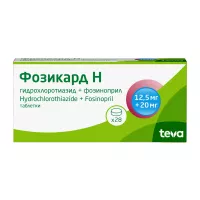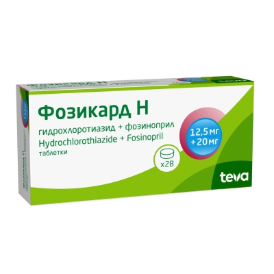 Соли кальция. Гидрохлортиазид может повышать концентрацию ионов кальция в сыворотке крови за счет уменьшения выведения его из организма. При одновременном применении с Фозикардом Н может потребоваться уменьшение дозы препаратов кальция. Биодоступность препарата при одновременном применении с хлорталидоном, нифедипином, пропранололом, циметидином, метоклопрамидом, пропантелина бромидом, дигоксином, ацетилсалициловой кислоты и варфарином не меняется. Всасывание гидрохлортиазида повышается при одновременном приеме средств, снижающих моторику желудочно-кишечного тракта.