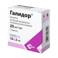 В острых случаях Галидор® вводят в/в медленно в дозе 100-200 мг (4-8 мл) или в/м глубоко в дозе 50 мг (2 мл). Перед в/в введением необходимое количество раствора разводят с помощью изотонического раствора натрия хлорида до 10-20 мл. Курс лечения составляет 2-3 недели с последующим переводом пациента, при необходимости, на прием препарата Галидор® внутрь.