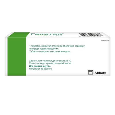 Итоприда гидрохлорид - гастропрокинетик для приема внутрь. Лекарственная форма и состав таблеток обеспечивают немедленное высвобождение действующего вещества. Итоприд характеризуется двойным механизмом действия: антагонизм к D2-допаминовых рецепторам и ингибирование ацетилхолинэстеразы. В результате действия итоприда увеличивается концентрация ацетилхолина, что приводит к усилению моторики желудка, повышению тонуса нижнего пищеводного сфинктера (НПС), ускорению процесса опорожнения желудка и улучшению гастродуоденальной координации.