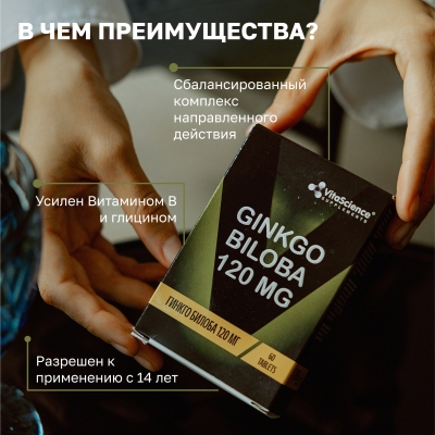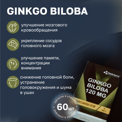 Экстракт гинкго билоба улучшает приток крови к головному мозгу, а также обеспечивает снабжение нервных клеток дополнительным количеством кислорода и глюкозы. В результате улучшаются когнитивные функции мозга, память и способность концентрировать внимание. Поэтому экстракт гинкго билоба применяют для поддержания и сохранения уровня интеллектуальных способностей, предупреждения различных возрастных изменений. Кроме того, он улучшает состояние нервных волокон глаз, следовательно, будет полезен для укрепления зрения и предупреждения его нарушений.
