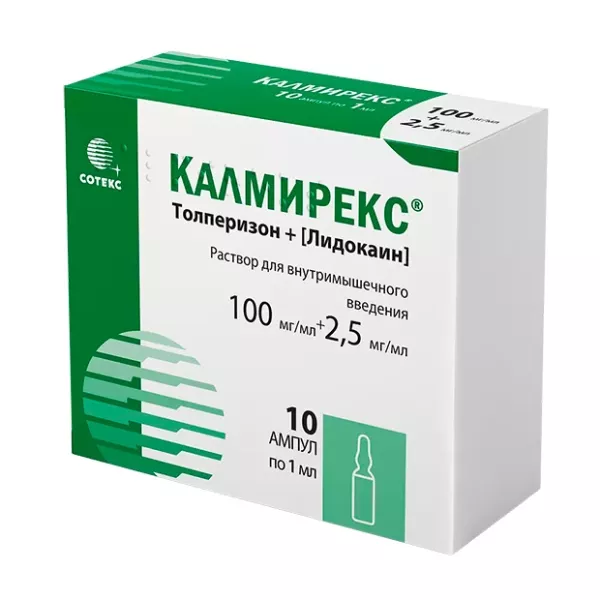 Нет данных о взаимодействии с лекарственными препаратами, которое ограничивает применение препарата КАЛМИРЕКС®. Хотя толперизон и оказывает влияние на ЦНС, он не вызывает седативный эффект и поэтому может применяться в комбинации с седативными, снотворными средствами и препаратами, содержащими этанол.
