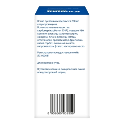 Действующее вещество: кларитромицин ? 500,00 мг.
