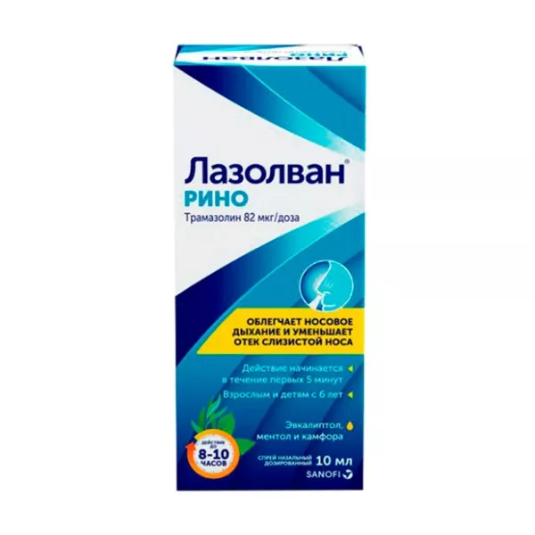 У пациентов с ХОБЛ длительная терапия препаратом Лазолван® (на протяжении не менее 2 мес) приводила к значительному снижению числа обострений. Отмечалось достоверное уменьшение длительности обострений и числа дней антибиотикотерапии. Активное вещество препарата Лазолван® Рино - трамазолина гидрохлорид, альфа2-адреномиметик, вызывает сужение сосудов. При нанесении на слизистые оболочки носа вследствие сосудосуживающего действия препарат уменьшает отечность. В результате, проходимость носовых ходов быстро восстанавливается, носовое дыхание надолго облегчается.