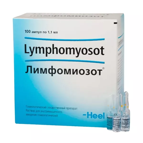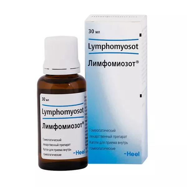 Лимфомиозот – это гомеопатическое средство, которое показано применять при болезнях лимфатической системы. Действие гомеопатического лекарства обусловлено влиянием его компонентов. Средство относится к лекарствам гомотоксического ряда. Обеспечивает лимфодренажное, противовоспалительное, противоотечное, дезинтоксикационное, иммуномодулирующее влияние. После попадания в организм лекарство стимулирует процесс обмен веществ, активизирует лимфодренаж от тканей, увеличивает барьерные функции лимфатических узлов. Также активный компонент стимулирует процесс элиминации токсических компонентов из межклеточной среды. Как следствие, отмечается улучшение процесса взаимодействия между нервной эндокринной и иммунной системами. Так, активизация лимфодренажа пищеварительной системы обеспечивает стимуляцию местного иммунитета слизистой кишечника. Подобные изменения происходят почти во всех слизистых в организме человека. При приеме Лимфомиозота отмечается более активное проникновение в ткани организма лекарств, принадлежащих к другим группам. В итоге появляется возможность уменьшить дозировку таких лекарств, а также снизить их токсическое влияние на ткани и органы. Средство активизирует защитную функцию иммунной системы и нормализует другие функции организма за счет комплексного влияния компонентов, имеющих минеральное, растительное и животное происхождение.