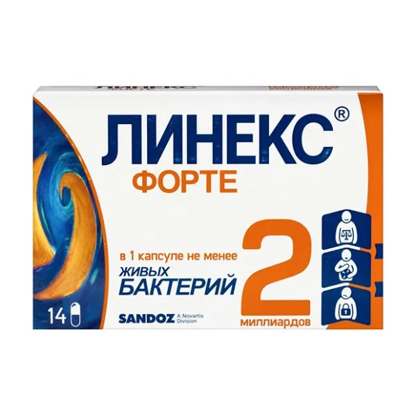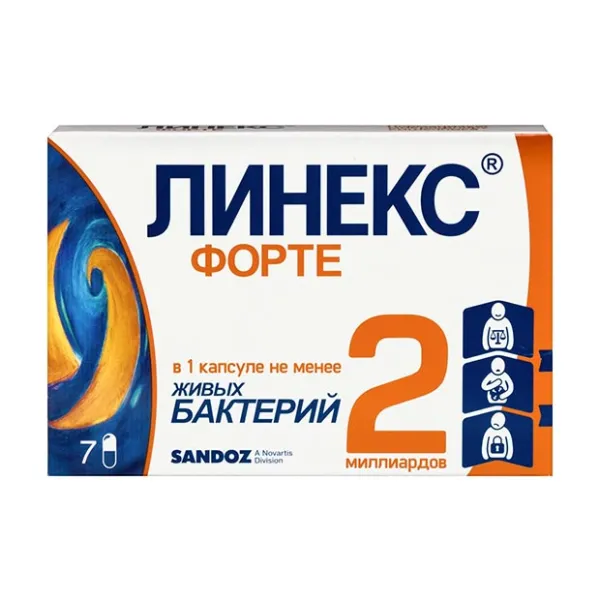 Взрослые и подростки старше 12 лет: по 2 капсулы 3 раза в день. Длительность лечения зависит от причины развития дисбактериоза и индивидуальных особенностей организма. Капсулы Линекс Форте предпочтительно принимать во время или после еды, запивая небольшим количеством жидкости. Взрослые и подростки старше 12 лет: по 1 капсуле 1-3 раза в день. Дети от 2 до 12 лет: по 1 капсуле 1-2 раза в день. Новорожденные и дети до 2-х лет: по 1 капсуле 1 раз в день. Диарею у детей младше 6 лет необходимо лечить под наблюдением врача.
