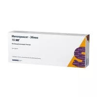 2. Анализ крови с определением лейкоцитарной формулы и количества тромбоцитов. Даже при применении в обычных терапевтических дозах метотрексат может внезапно вызвать угнетение кроветворения. В случае значительного снижения количества лейкоцитов или тромбоцитов лечение метотрексатом немедленно прекращают и назначают симптоматическую поддерживающую терапию. Пациенты должны быть проинструктированы о необходимости немедленно сообщать врачу о любых признаках и симптомах, свидетельствующих о развитии инфекции. При сопутствующей терапии или ранее проводившейся терапии гематотоксичными препаратами (например, лефлуномидом), лучевой терапии необходимо внимательно следить за количеством лейкоцитов и тромбоцитов в крови. При необходимости целесообразно выполнение биопсии костного мозга.