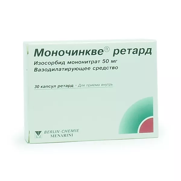 Моночинкве® ретард назначают по 50 мг (1 капс.) 1 раз/сут утром после еды, не разжевывая и запивая небольшим количеством жидкости.