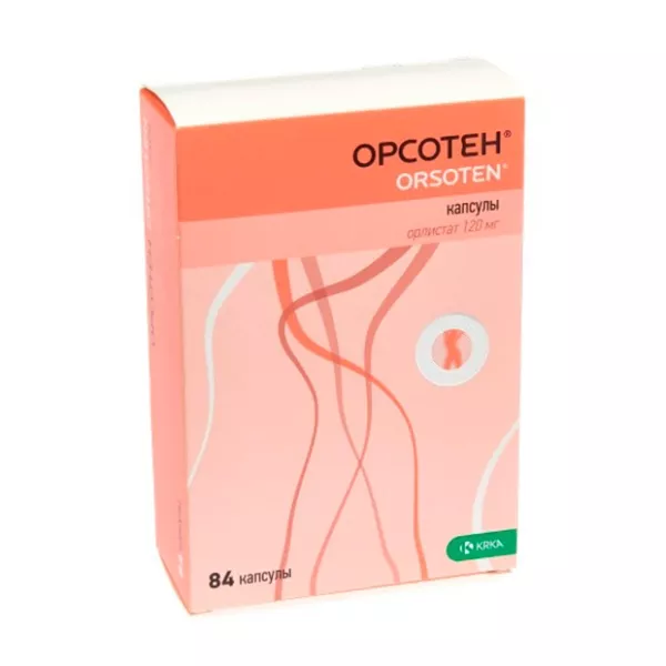 Действующее вещество: орсотен полуфабрикат-гранулы 225,6 мг (в пересчете на активное вещество орлистат — 120 мг);