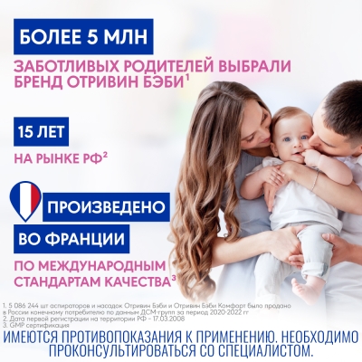 Отривин® хорошо переносится пациентами с чувствительной слизистой оболочкой, его воздействие не препятствует отделению слизи. Отривин® имеет сбалансированное значение рН, характерное для полости носа.