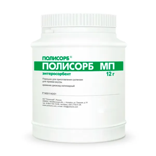 Фармакологические свойства. Полисорб МП (медицинский пероральный) - неорганический, неселективный, полифункциональный энтеросорбент на основе высокодисперсного кремнезема с размерами частиц до 0,09 мм, с химической формулой SiO2. Сорбционная емкость препарата при внутреннем употреблении равна 300 м?/г.