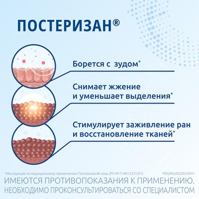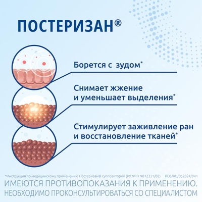 Содержащиеся в Постеризане антигены клеточных стенок и метаболиты кишечной палочки при контакте со слизистой оболочкой прямой кишки и кожей аногенитальной области повышают местную резистентность тканей к воздействию патогенной микрофлоры.