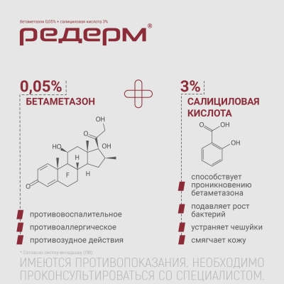 Необходимо учитывать, что при кожных заболеваниях, протекающих с гиперемией и воспалением (в т.ч. псориатическая эритродермия) или с поверхностными мокнущими поражениями, возможно повышение всасывания салициловой кислоты.