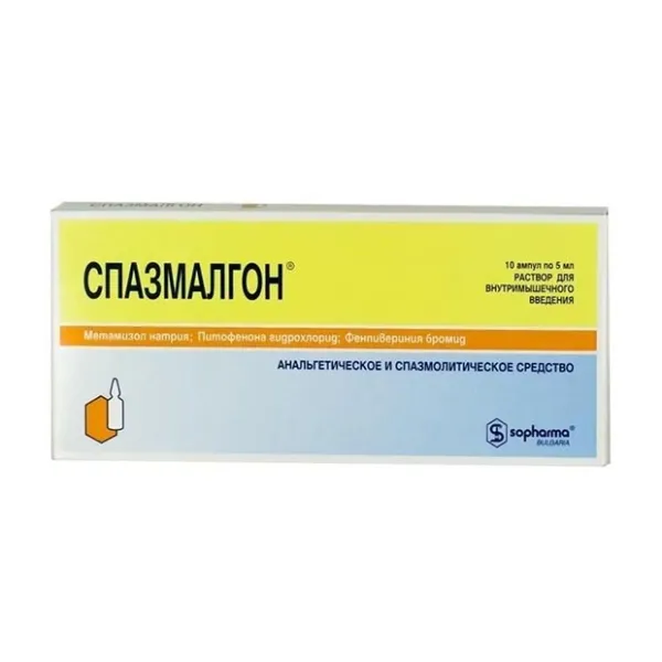 1 мл содержит метамизола натрия 500 мг, питофенона гидрохлорида 2 мг и фенпивериния бромида 20 мкг.
