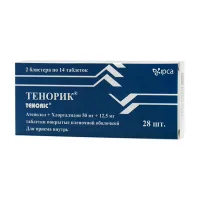 Действующие вещества: атенолол 50 мг; хлорталидон 12.5 мг;
