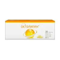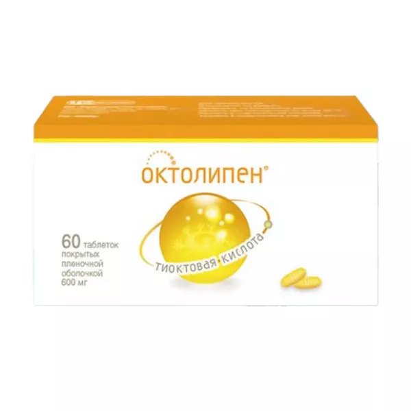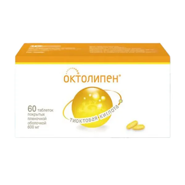 этилендиаминовая соль тиоктовой (?-липоевой) кислоты 64,66 мг (776мг), что соответствует содержанию тиоктовой (?-липоевой) кислоты 50мг (600 мг).