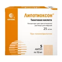 Лечение: При подозрении на интоксикацию тиоктовой кислотой (например, введение более 80 мг тиоктовой кислоты на 1 кг массы тела) рекомендуется экстренная госпитализация и немедленное применение мер в соответствии с общими принципами, принятыми при случайном отравлении. Терапия симптоматическая. Лечение генерализованных судорог, лактоацидоза и других угрожающих жизни последствий интоксикации должно проводиться в соответствии с принципами современной интенсивной терапии. Специфического антидота нет. Гемодиализ, гемоперфузия или методы фильтрации с принудительным выведением тиоктовой кислоты не эффективны.