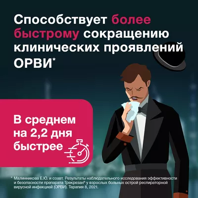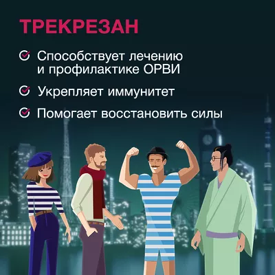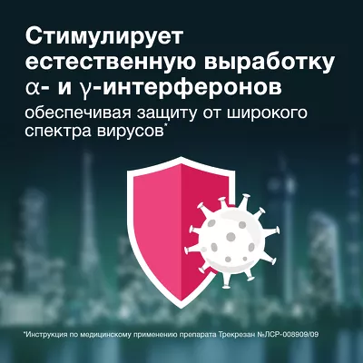 Трекрезан – относится к иммуномодулирующим препаратам с выраженными адаптогенными свойствами. Препарат предназначен для стимуляции выработку ?- и ?-интерферонов, способствует повышению и коррекции иммунного статуса организма за счет активации клеточного и гуморального иммунитета, стимулирует фагоцитарную активность макрофагов.