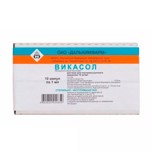 действующее вещество: менадиона натрия бисульфитАнтигеморрагическое средство (гемостатик). Представляет собой синтетический аналог витамина К. Является кофактором синтеза протромбина и других факторов свертывания крови (VII, IX, X) в печени, способствует и предназначен для нормализации процесса свертывания крови. Обладает гемостатическим действием (при дефиците витамина К возникает повышенная и обильная кровоточивость).