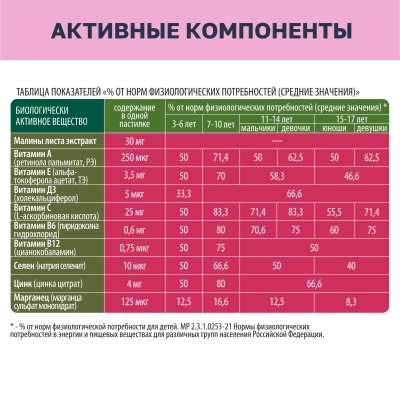 -профилактика и коррекция недостаточности витаминов и минералов.
