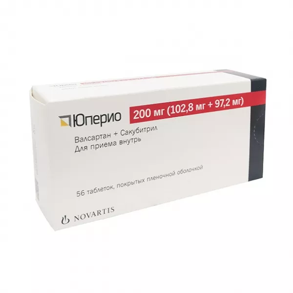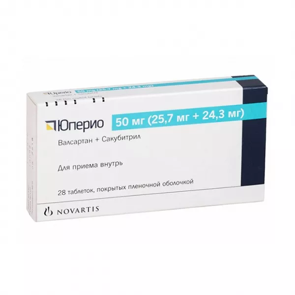 Действие препарата Юперио опосредовано новым механизмом, а именно, одновременным подавлением активности неприлизина (нейтральной эндопептидазы (neutral endopeptidase, NEP)) веществом LBQ657 (активным метаболитом сакубитрила) и блокадой рецепторов к ангиотензину II 1-го типа (AT1) валсартаном, являющегося антагонистом рецепторов ангиотензина II (APA II).